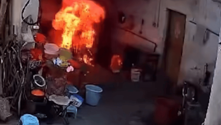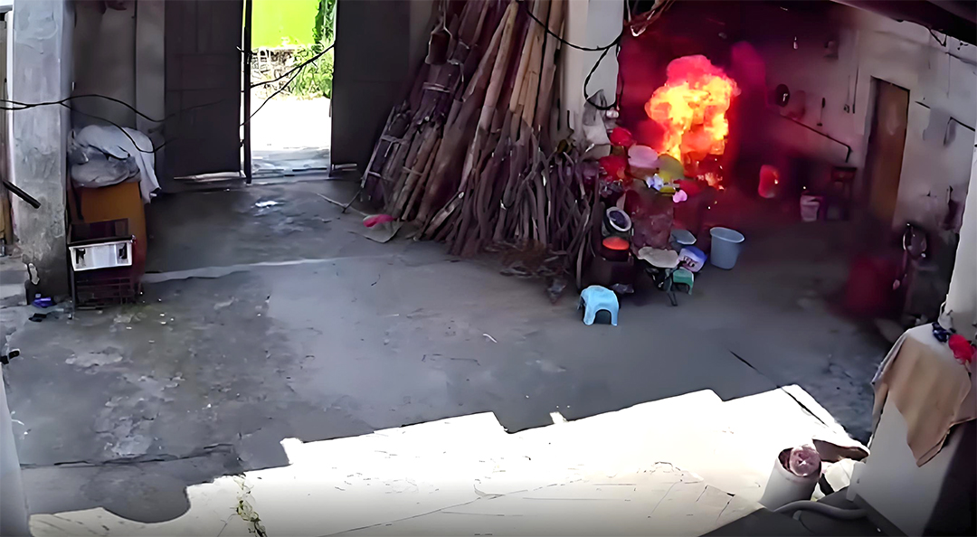 京陽(yáng)消防從廣東省消防部門(mén)了解到,近日,在廣東韶關(guān)一位村民家的院子里突然發(fā)生了爆炸,響聲巨大。一名男孩從爆炸點(diǎn)沖出,他的衣服劇烈燃燒。視頻監(jiān)控顯示,男孩在院子里驚慌失措地奔跑,試圖撲滅身上的火焰。一位老人目睹了這一幕,嚇得急忙沖出門(mén)外。最終,男孩舀水澆在自己身上,進(jìn)行了緊急自救。