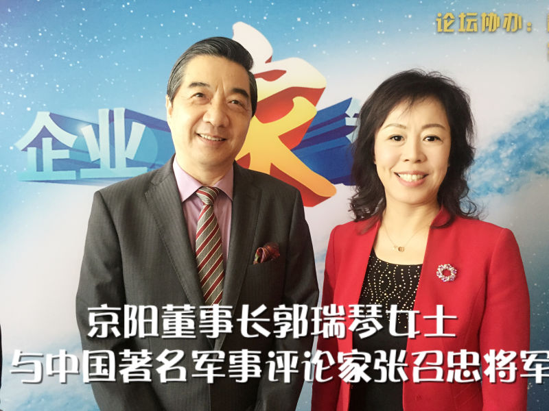 京陽(yáng)消防獨(dú)家負(fù)責(zé)2015年《企業(yè)家智慧》千人高峰論壇的消防安全保障服務(wù)。本次峰會(huì)請(qǐng)到中國(guó)著名軍事評(píng)論家,學(xué)者張紹忠先生講解分享,京陽(yáng)消防董事長(zhǎng)郭瑞琴女士與張紹忠將軍密切交談。