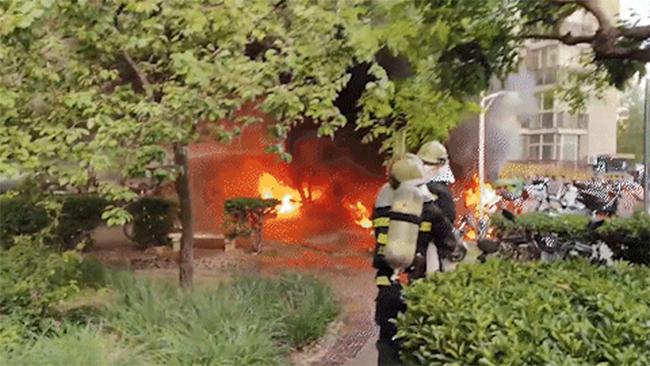 消防員到場后用時3分鐘,現(xiàn)場明火被撲滅。經(jīng)火災(zāi)調(diào)查人員現(xiàn)場勘察、查看視頻監(jiān)控和走訪詢問等,初步判定系一輛電動自行車在充電過程中電池故障引發(fā)了火災(zāi)。目前已提取蓄電池、電氣線路殘骸送檢。經(jīng)統(tǒng)計,車棚內(nèi)有12輛電動車被燒毀,另有近20輛電動車、自行車受到波及。