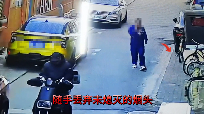 一名男子隨手將未熄滅的煙頭丟棄路邊,