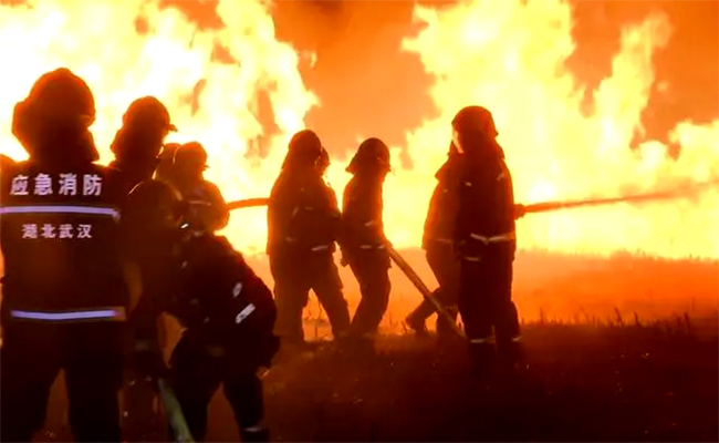 武漢市江岸區(qū)漢口江灘朱家河入口處附近的蘆葦蕩突發(fā)起火。