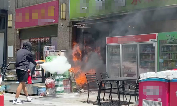 一家超市的門口意外地冒出了熊熊烈火