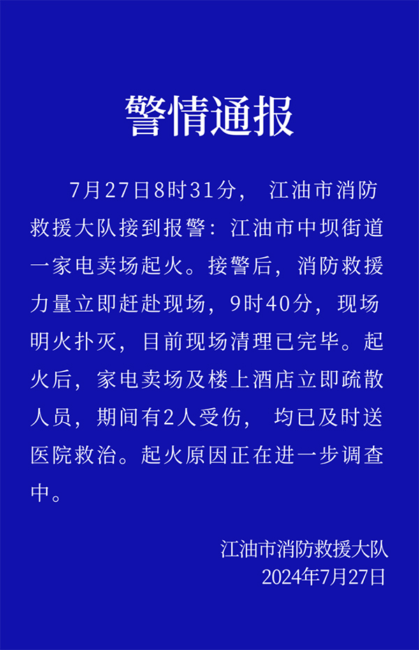 - 四川一商場(chǎng)發(fā)生火災(zāi),2人受傷!